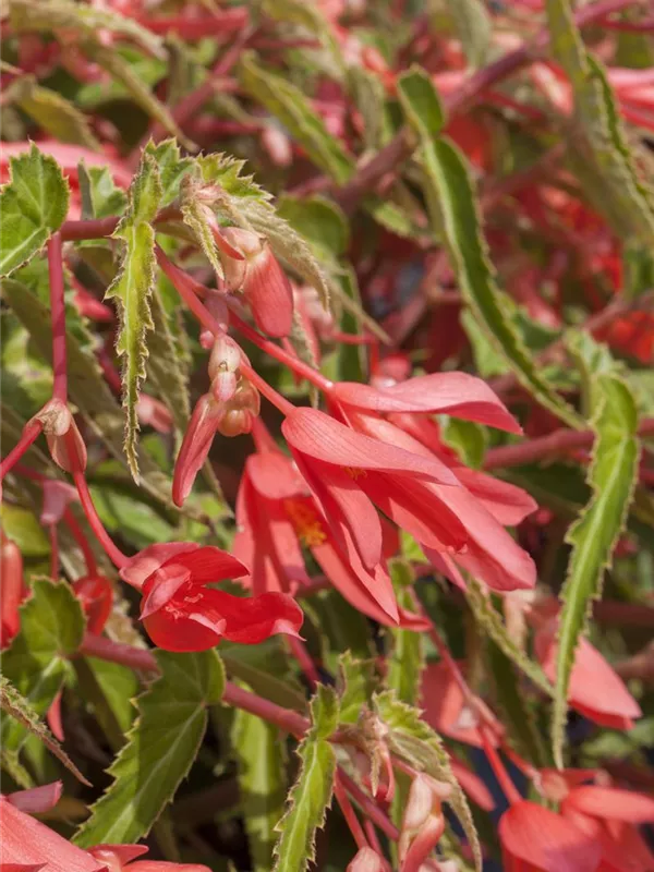 Die Knollenbegonie verzaubert durch ihre zahlreichen roten Blüten, die die ganze Saison hindurch erscheinen.
