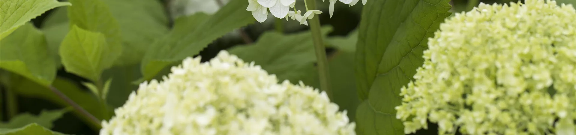 Hydrangea arborescens erreicht gewöhnlich eine Höhe von 2 - 3 m und wird bis zu 1 - 2 m breit.