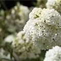 Die cremeweißen Blüten des Schneeball 'Eskimo' erscheinen in Trugdolden von April bis Mai. Diese sind stark duftend. Bei richtiger Pflege Nachblüte im Oktober.