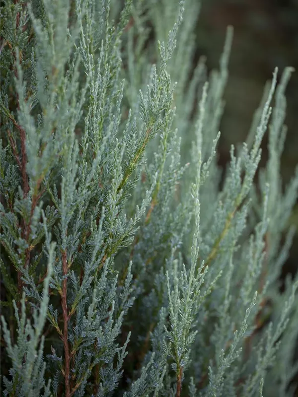 Der Virginische Wacholder 'Blue Arrow' ist immergrün. Seine Nadeln sind blau-grau, schuppenförmig.