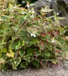 Houttuynia cordata wächst kriechend, rhizombildend und erreicht gewöhnlich eine Höhe von 30 - 50 cm und wird bis zu 30 - 50 cm breit.