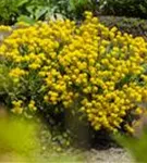 Das Felsen-Steinkraut (Aurinia saxatilis) ist eine kissenförmige wintergrüne Staude, die von April bis Mai gelbe, radförmige Blüten bildet. An einem sonnigen bis halbschattigen Standort mit durchlässigem, sandigem, lehmigem Boden erreicht es gewöhnlich eine Höhe von ca. 30 cm und wird ca. 40 cm breit. Das Felsen-Steinkraut ist gut frostverträglich.