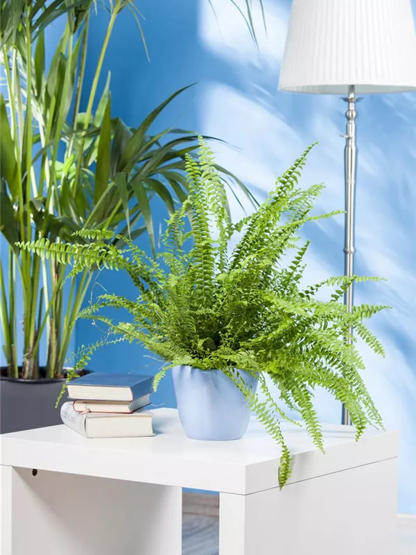 Die zu den Schwertfarnen gehörige Art Nephrolepis exaltata bringt Lebendigkeit an jeden Ort! Der Exot wächst unter natürlichen Bedingungen in tropischen Gebieten, wo er selbst auf Bäumen vorkommen kann. Seine einfach gefiederten Wedel wachsen dicht und besitzen ungestielte Fiederblättchen. Wedel und Blättchen können leicht bis stark gewunden sein und sind leuchtend grün gefärbt.