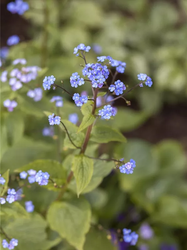 Hoher Blattschmuckwert. Die sommergrünen Blätter des Kaukasus-Vergissmeinnichts sind dunkelgrün, herzförmig.