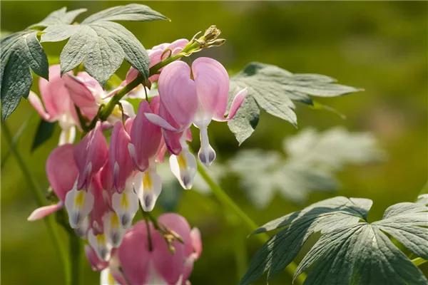 Die sommergrünen Blätter des Tränenden Herzes sind blau-grün, gefiedert.