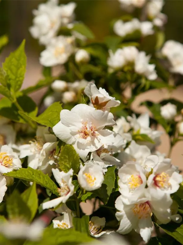 Wenn der Philadelphus voll mit seinen weißen, schalenförmigen, duftenden Blüten ist, dann kann man gewiss sein, dass der Sommer Einzug gehalten hat. Die unglaubliche Blütenfülle lockt die Bienen an, so dass es in der Umgebung des Laubgehölzes nicht nur gut riecht, sondern auch summt und brummt. Der Pfeifenstrauch, wie er auch genannt wird, gehört zu den dekorativsten Sträuchern in der deutschen Gartenwelt. Wer ihn als Solitär anpflanzt, macht nichts verkehrt.
