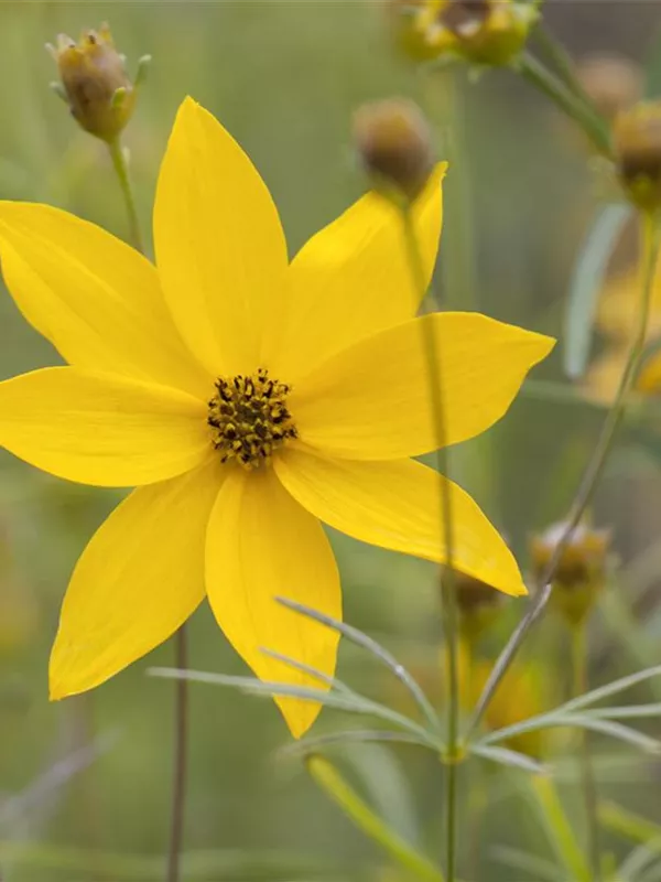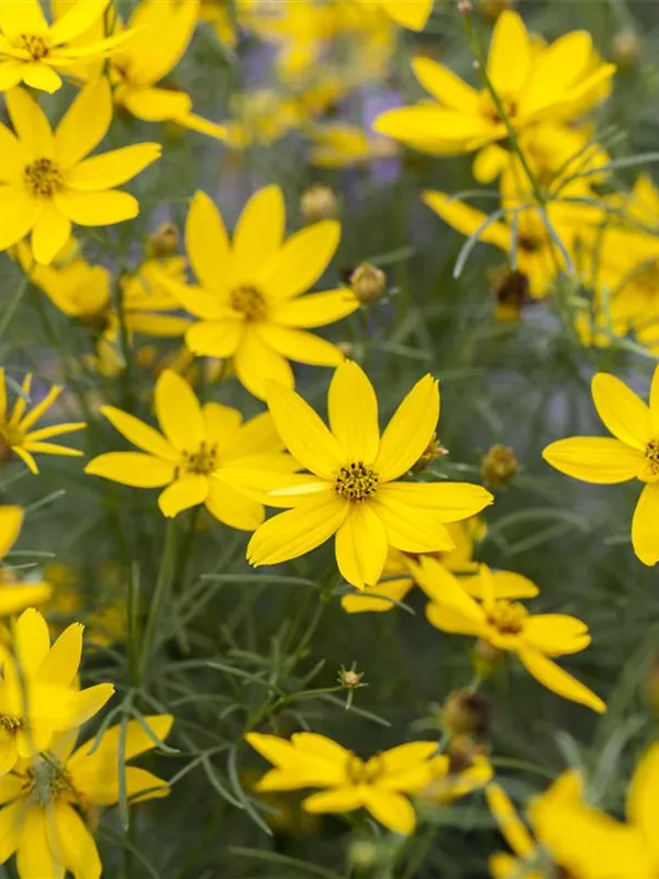 Das Mädchenauge (Coreopsis verticillata) bildet gelbe, ansehnliche Blüten von Juni bis September. Die Blüten sind strahlenförmig.