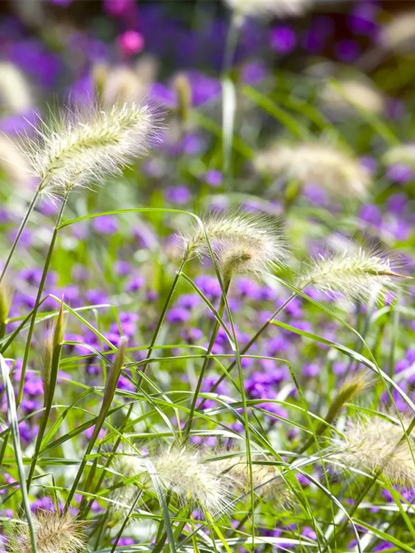 Das Asiatische Federborstengras Pennisetum alupecuroides ist ein sehr ausdauerndes und in dichten Horsten wachsendes Ziergras. Seine Blütenstände erinnern mit ihrer walzenförmigen, flauschigen Form an Lampenputzer. Daher ist es unter anderem auch als Lampenputzergras bekannt. Die aufrecht übergebogenen Halme können eine Wuchshöhe von bis zu 100 cm erreichen. Wem das zu groß ist, der sollte sich für die Sorte ‚Hameln‘ entscheiden. Diese bleibt um einiges kleiner und steht in Sachen Schönheit seinem größeren Verwandten in nichts nach.