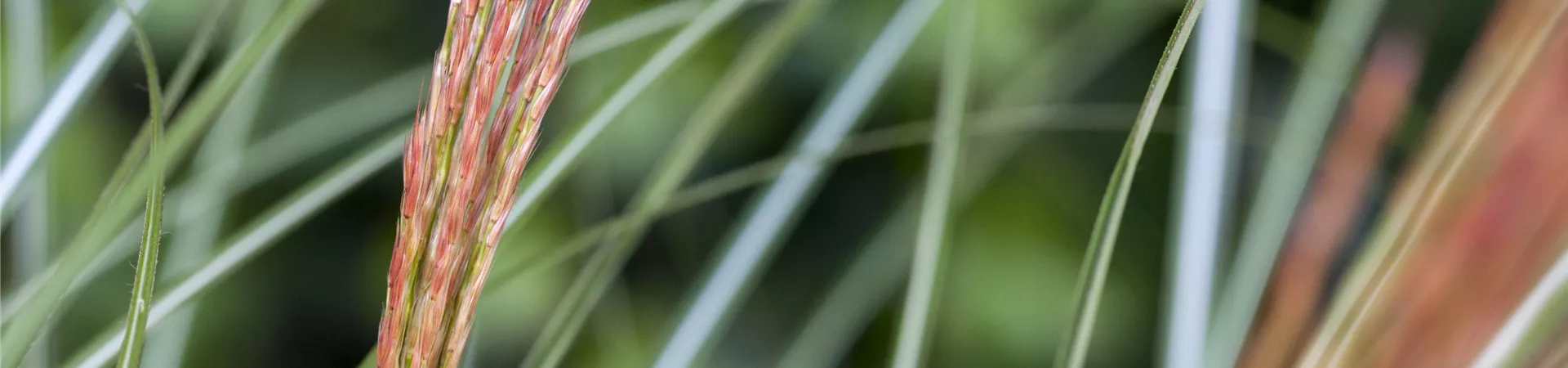 Die silbrigen Blüten des Garten-Chinaschilf erscheinen in Rispen von August bis September.