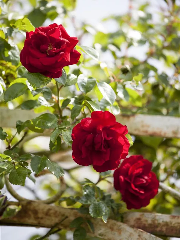 Nostalgie pur macht sich bei der Betrachtung alter Gärten breit. Diese werden meist von einem Spalier aus Kletterrosen dominiert. Schlingrosen haben sich nicht nur bei Romantikern ihren Platz zurückerobert. Wuchsfreudig erklimmen sie Bäume und Mauern, auch Hauswände sind kein Hindernis. Man denke nur an das märchenhafte Dornröschenschloss. Mit ihrem himmlischen Duft begleiten uns die Kletterrosen durch den Sommer. Im Herbst werden die Pflanzen zurückgeschnitten. Ein Winterschutz ist notwendig.