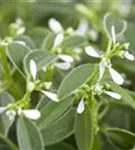 Der Zauberschnee™ zählt zu den Wolfsmilchgewächsen und trägt zarte, schneeweiße Blüten. Familientypisch werden seine namensgebenden Blüten jedoch nicht von Kronen gebildet, sondern von umgewandelten Hochblättern. Obwohl die ungeteilten, länglichen Blätter deutlich abgesetzter Mittelrippe nicht dicht stehen, zeichnet die Pflanze ein buschiger Wuchs aus, der sie zur Bepflanzung von Kübeln und Ampeln prädestiniert.