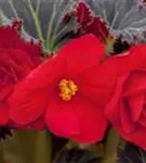 Zu den Knollenbegonien oder den Begonia x tuberhybrida zählen Sorten unterschiedlichster Blütenfarbe und Wuchsform. Während Sorten, die durch einen überhängenden Wuchs charakterisiert sind, speziell für die Bepflanzung von Ampeln und Kästen genutzt werden, sind buschig aufrecht wachsende Vertreter insbesondere als Zimmerpflanzen beliebt. Gattungstypisch besitzen die Begonien ein asymmetrisch-geformtes Laub glänzender Oberfläche.