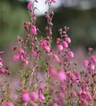 Die Irische Heide bildet rosafarbene Blüten von Juni bis Oktober. Die Blüten sind glockenförmig.