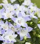 Campanula carpatica wächst buschig und erreicht gewöhnlich eine Höhe von 20 - 25 cm und wird bis zu 20 - 25 cm breit.