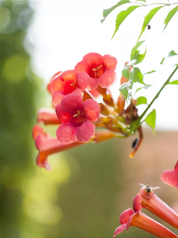 Die Rote Kletter-Trompetenblume bildet rote Blüten von Juli bis September.