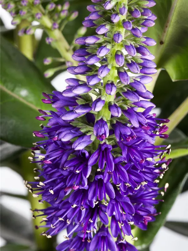 Eine Strauchveronika ist ein sehr dekoratives Element auf einer Terrasse. Zwischen den länglichen Blättern klettern im Hochsommer große, lippenartige Blüten hervor, die mit ihrer violetten Farbe wunderschöne kräftige farbige Streifen in dem immergrünen Laubgehölz erzeugen. Das buschige Wachstum und die Höhe von 40 bis 60 Zentimetern macht diese Veronika zu einem erstklassigen Kandidaten für einen Kübelbewohner.