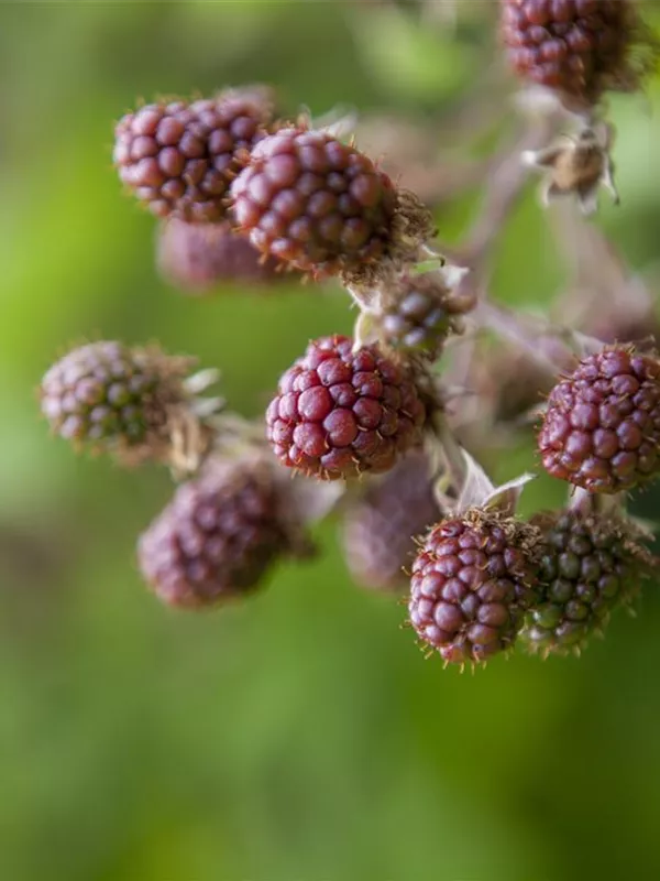Die zu den Rosengewächsen gehörige Art Rubus fruticosus, besser bekannt unter dem Namen Brombeere, bringt wohlschmeckende Früchte leicht sauren Aromas hervor. Als Kletterpflanze ist die Brombeere pflegeleicht und schnittverträglich. Da sie immer am 2-jährigen Trieb trägt, sollten die abgeernteten Ruten bodennah abgeschnitten und die einjährigen Triebe für die Ernte im nächsten Jahr am Klettergerüst angebunden werden.
