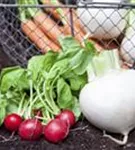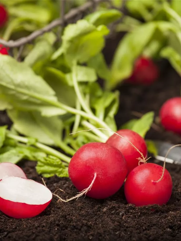 Das ist knackige, gesunde Ernährung, die aus dem eigenen Garten kommt. Der Rettich ist außerdem noch farbenfroh veranlagt.