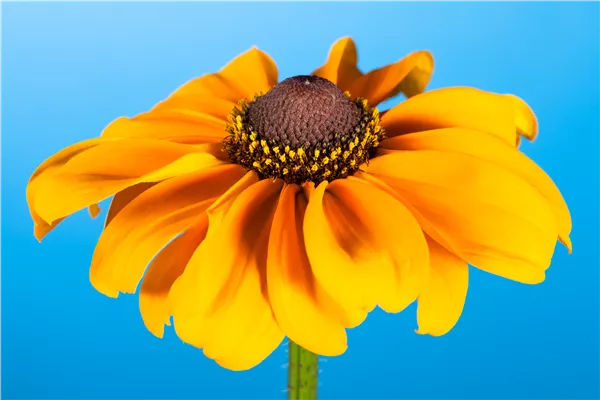 Der Raue Garten-Sonnenhut (Rudbeckia hirta) bildet orangegelbe, ansehnliche Blüten von Mai bis September. Die Blüten sind radförmig.