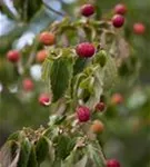 Besonders dekorativ sind die rosaroten, runden Beeren von Cornus kousa. Diese erscheinen ab September.