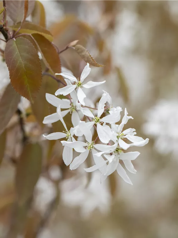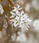 Die weißen, sternförmigen Blüten der Essbaren Felsenbirne 'Ballerina' erscheinen in Trauben von April bis Mai.