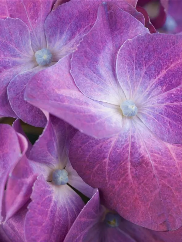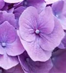 Die lilafarbenen, schalenförmigen Blüten der Bauernhortensie erscheinen in Dolden von Juni bis September.