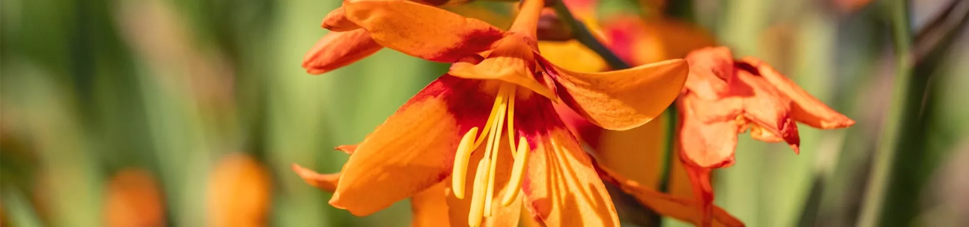 Die Montbretie darf in einem hübschen Staudenbeet nicht fehlen. Mit den leuchtenden Blüten bringt sie jede Menge Farbe mit und sorgt definitiv für optische Akzente in der Gestaltung.